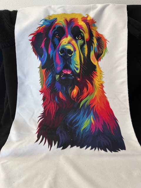 Prachtige handdoek van 100 x 50 cm met een gekleurde Leonbergerkop! Wie wil er zijn handen niet aan drogen.