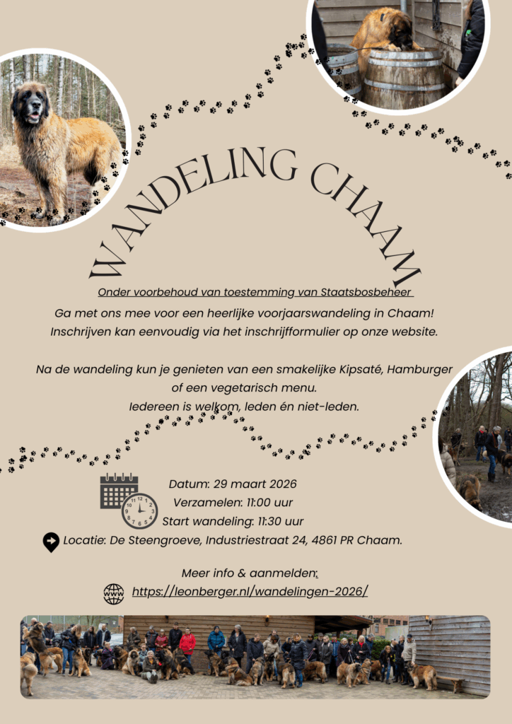 Aansprakelijkheid & Veiligheid: Deelnemen aan de wandeling geschiedt onder eigen verantwoordelijkheid. U bent zelf verantwoordelijk voor uw veiligheid en die van uw hond(en) tijdens de wandeling. De vereniging is niet aansprakelijk voor door u opgelopen materiële en immateriële schade tijdens de wandeling of voor schade door u als deelnemer toegebracht aan derden tijdens deze wandeling. De vereniging is niet aansprakelijk voor vermissing of beschadiging van uw eigendom.