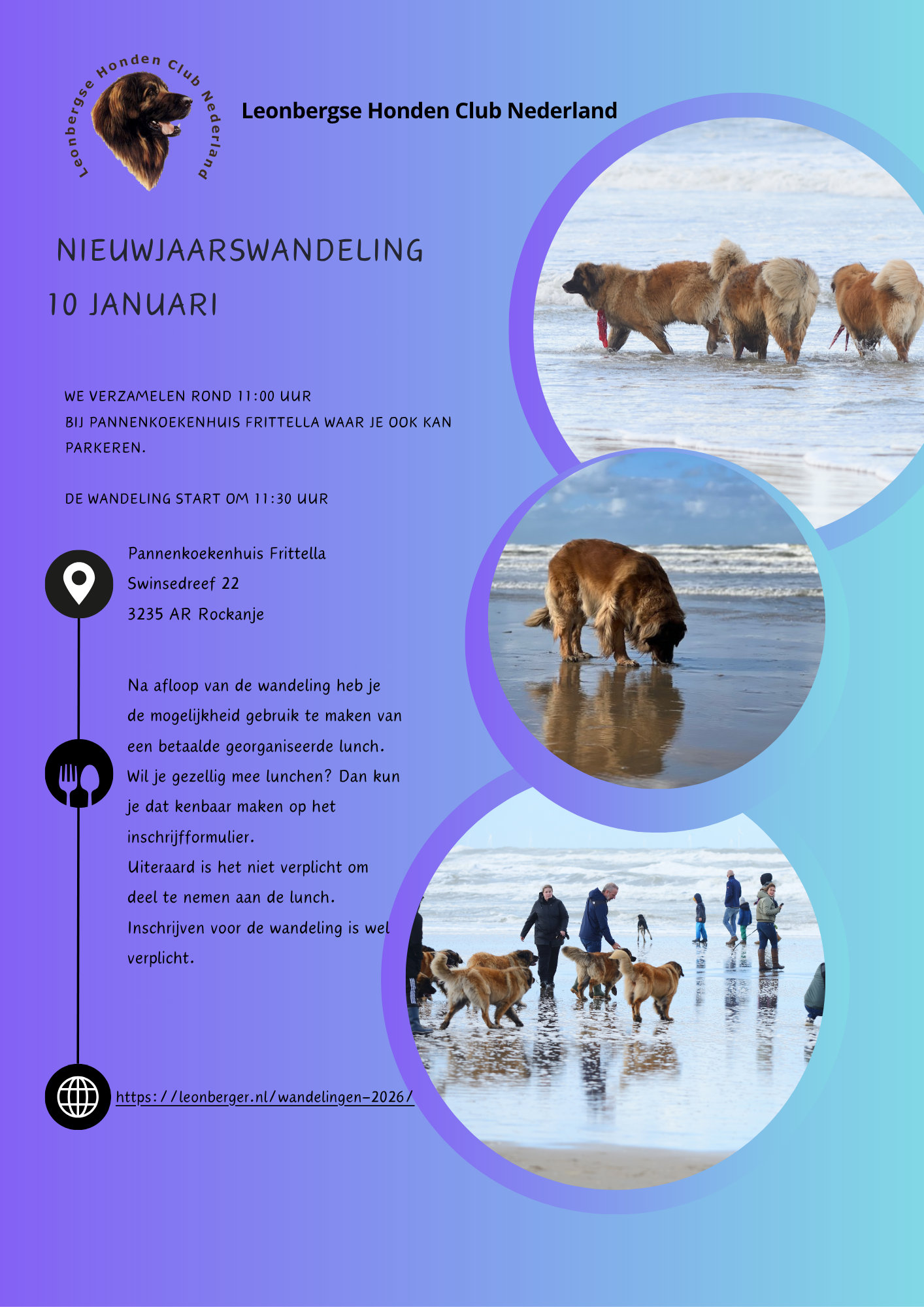 Op zaterdag 10 januari 2026 luiden we samen het nieuwe jaar in met een ontspannen wandeling over het strand. Voor onze honden wordt het misschien wel een echte Nieuwjaarsduik!